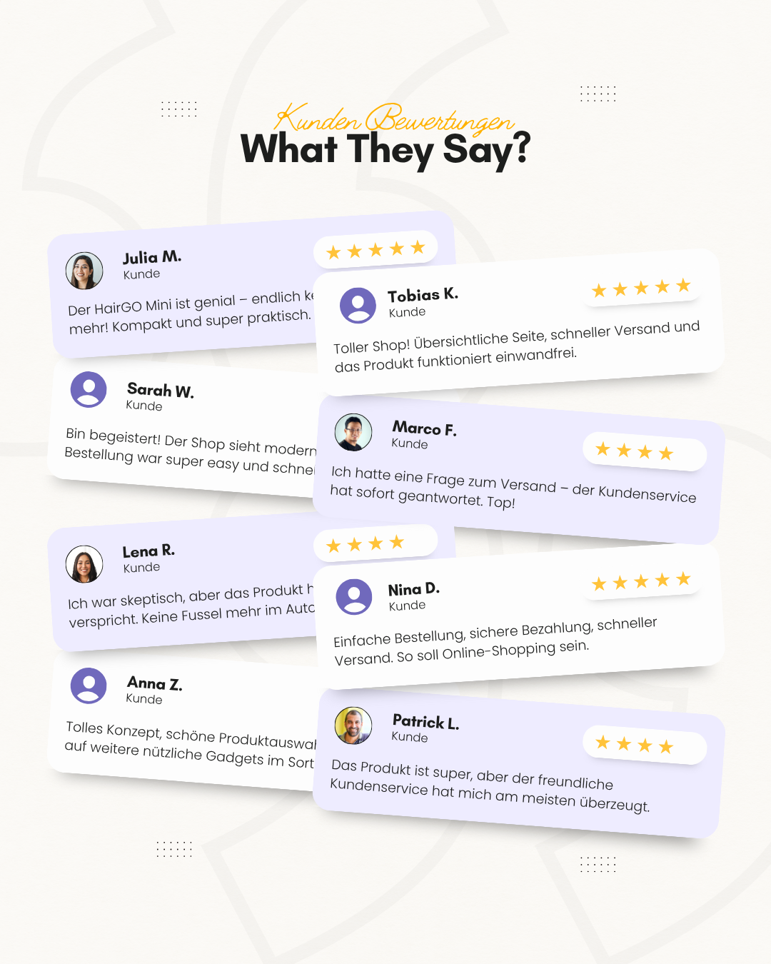 Mit den angesagtesten Trends und praktischen Gadgets bringen wir dir Qualität, Funktionalität und Stil – und das zu einem unschlagbaren Preis. Deine Zufriedenheit steht für uns an oberster Stelle, unterstützt durch schnellen Service und persönliche Betreuung.